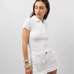 Lion, mid-low rise skort, made from superior denim and 99% organic cotton, with the iconic ANDESITES button, side and back pockets and front zip fastening.